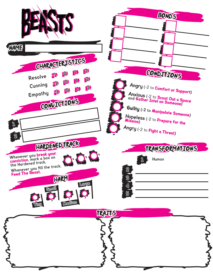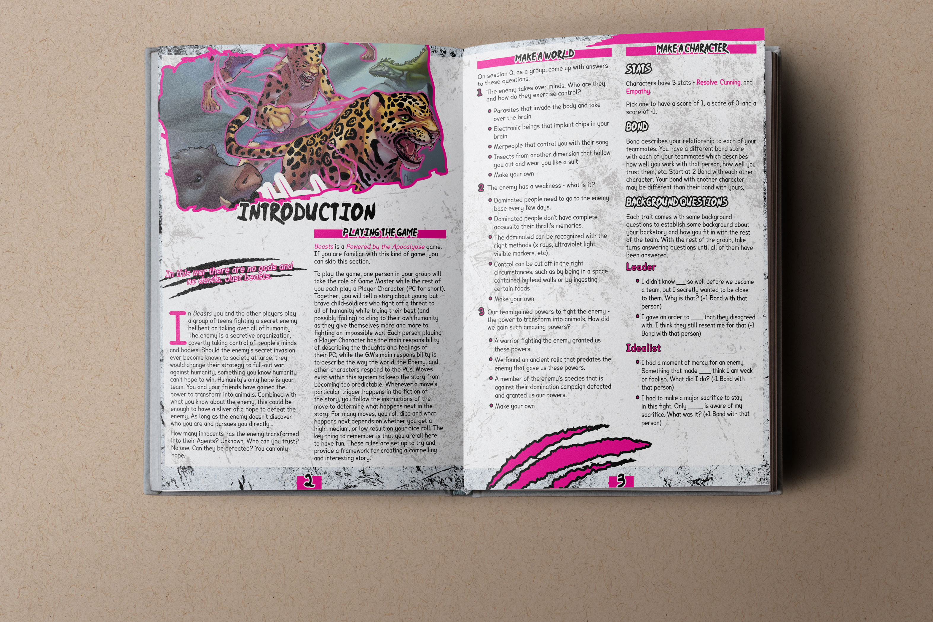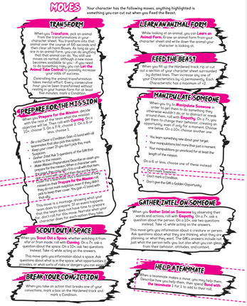 Beasts is a Powered by the Apocalypse game inspired by the Animorphs book series.